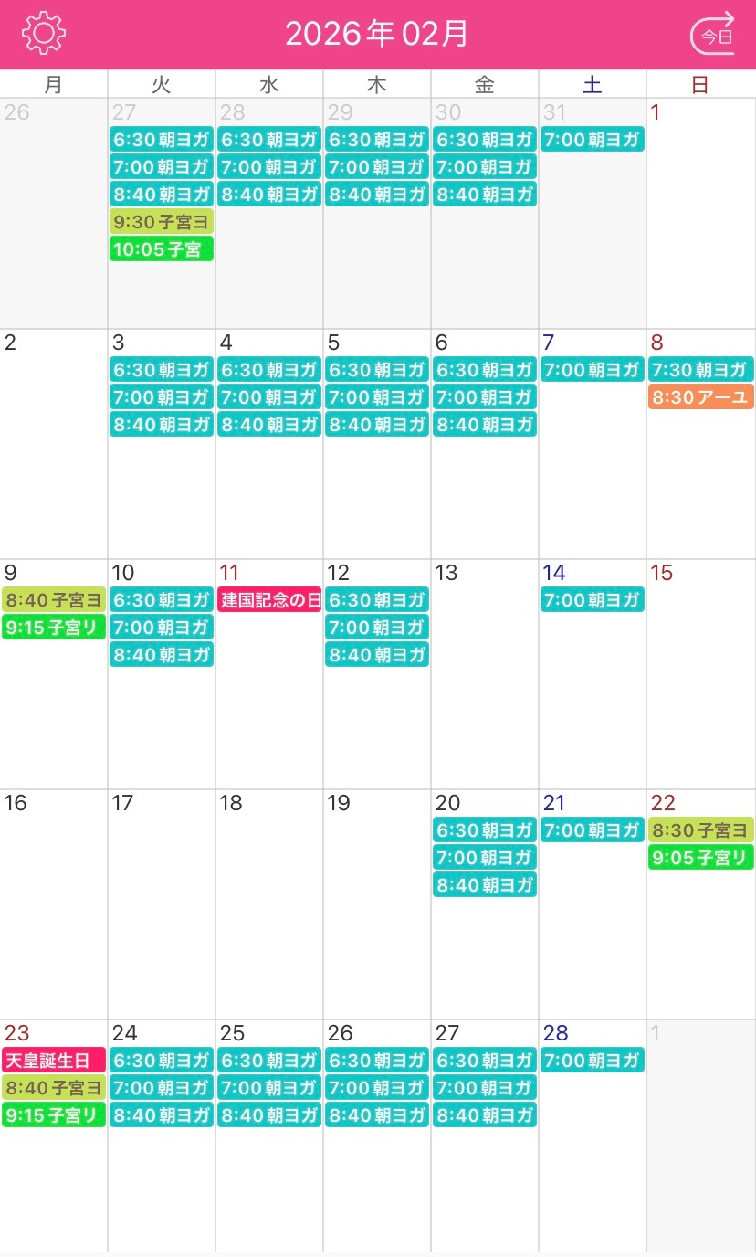 2月レッスンカレンダー(オンライン) | YURIE YOGA