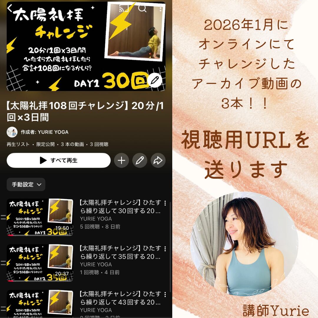 2026年1月におこなった特別レッスン【太陽礼拝チャレンジ】のアーカイブ動画です。